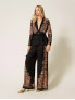 Опис: Класичний жакардовий блейзер із флоральним візерунком пейсли, виконаний у вільному крої з підкладкою і поясом для регулювання силуету на талії. Модель має однобортну застібку на ґудзики, вшиті плечі, довгі рукави та стандартну довжину до стегон. Вона поєднує жіночність і комфорт, підходить для створення витончених образів осінньо-зимового сезону 2025 року. Рекомендації з догляду: не прати, не застосовувати відбілювачі, делікатна хімчистка, прасування при низькій температурі.
