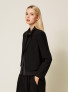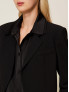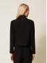 Опис: Укорочений блейзер TWINSET з лінії Actitude, створений із комбінованої костюмної тканини, що забезпечує комфортну посадку та легку еластичність. Модель має класичні лацкани-ревери, однобортну застібку на ґудзики та довгі рукави. Фігурний низ акцентує талію та формує витончений силует. Прорізні кишені з клапанами підкреслюють структурність моделі. Блейзер ідеально поєднується з брюками чи спідницями для створення smart-casual образів. Колір: чорний.