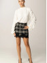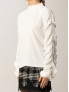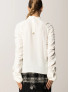 Опис: Жіноча блуза TWINSET білого кольору з драпіруваннями, рюшами та металевим логотипом «Oval T». Має застібку на ґудзики, виготовлена з ніжного, дихаючого віскозного матеріалу. Рекомендований догляд — суха чистка. Кроїться у вільному стилі, що підкреслює жіночність та елегантність.
