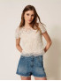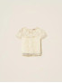 Опис: Легка блуза з муслінової бавовняної тканини має вільний силует і м’яку фактуру, що забезпечує комфортну посадку та делікатно огортає фігуру, не обмежуючи рухів. Округлий виріз горловини, короткі рукави з фестончастим краєм та вишивка у техніці Dori створюють витончений, жіночний образ з акцентом на ручну деталізацію. Завдяки натуральному складу з додатковими вставками блуза приємна до тіла, добре підходить для теплої пори року та міжсезоння, легко поєднується з джинсами, шортами чи спідницями, додаючи образам легкості та повітряності.