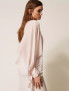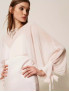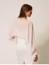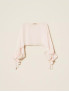 Опис: Вкорочена блуза з джорджету має вільний крій та довгі рукави, що м’яко драпіруються й створюють легкий, повітряний силует без обмеження рухів. Округлий/човникоподібний виріз горловини, занижена лінія плечей та декоративні зав’язки-банти на манжетах додають моделі жіночності та підкреслюють її як акцентний верх для образів із високою талією. Завдяки тонкій віскозній тканині блуза приємна до тіла, добре підходить для теплої пори року та міжсезоння, гармонійно поєднуючись із широкими брюками, спідницями або джинсами, створюючи елегантні та сучасні комплекти.
