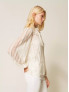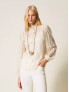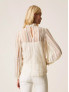 Опис: Витончена блузка з смугастого мережива, доповнена елегантним бантом для виразного акценту. Прямий крій з прозорими мереживними вставками забезпечує комфортне прилягання та легкість у носінні, роблячи її практичною для багатошарових образів. Підходить для весняно-літнього сезону, поєднує романтичну естетику з універсальністю для щоденного гардероб