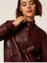 Опис: Куртка бордового кольору "Wine tasting" з прямим кроєм, прикрашена ґудзиками з логотипом Oval T, має дві накладні зовнішні кишені та застібається на ґудзики. Виконана з якісного штучного шкіряного матеріалу (полиестер з PU покриттям), забезпечує стильний та сучасний вигляд, підходить для сезону осінь-зима 2025 року. Рекомендується ручне прання, низькотемпературне прасування без пари, а також дбайливе хімічне чищення. Куртка підкреслює елегантність і динамічний стиль бренду TWINSET.