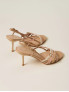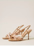 Опис: Сандалі з багатошаровою конструкцією ремінців, що обвивають стопу, мають відкриті пальці та тонкий каблук, створюючи елегантний силует для літнього сезону. Регулювальна застібка на щиколотці забезпечує надійну фіксацію та комфортне носіння протягом дня, підкреслюючи жіночність завдяки вишуканій формі та легкості. Практична підошва з термопластику додає зносостійкості, роблячи модель універсальною для міських прогулянок та вечірніх виходів.