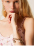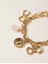 Опис: Багатошаровий металевый браслет з чармами у вигляді прозорих перлиноподібних каменів та підвісок, гальванічним покриттям блідо-золотого кольору та застібкою-омар. Елегантний аксесуар додає вишуканості повсякденним образам, легко регульований для комфортної посадки. Практичний для шарового носіння, поєднує жіночність з брендовим стилем.