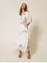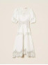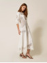 Опис: Довга сукня з суміші льону та віскози з силуетом fit & flare підкреслює талію та м’яко розкльошується донизу, створюючи витончений жіночний образ з виразними вишитими вставками у фірмовому стилі Twinset. Легкий матеріал та повітряний крій роблять модель ідеальною для теплого сезону, забезпечуючи комфорт у спекотні дні та свободу рухів. Вишивка з бавовни додає фактурності та елегантності, а довжина максі дозволяє носити сукню як для повсякденних прогулянок, так і для святкових подій, поєднуючи естетику та практичність у одному виробі.