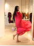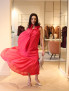 Опис: Довга сукня вільного крою з легкої вуалевої тканини та воланом на комірі з металевою ниткою для стійкої форми. Каплеподібний виріз з ґудзиком спереду та пояс для регулювання силуету забезпечують елегантність та комфорт, ідеальна для весняно-літніх подій. Романтичний багатошаровий дизайн створює повітряний ефект для вишуканих образів.