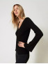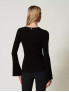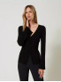 Опис: Особливості крою та стиль: приталений світр з ребристою текстурою, декоративним заокругленим вирізом і довгими рукавами, що підкреслює фігуру. підходить для осінньо-зимового періоду. виріб поєднує стильність та елегантність без зайвих деталей. м’який і еластичний матеріал забезпечує комфорт і свободу рухів, рекомендується дбайливий догляд (без відбілювання, сушіння в сушарці та хімчистки). Модель ростом 178 см, розмір XS/40. Виготовлено в Італії.