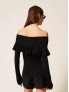 Опис: Джемпер з лінії Actitude від TWINSET, виконаний із еластичної трикотажної пряжі в рубчик із додаванням люрексу. Модель має відкритий виріз по лінії плечей у стилі bardot, оформлений широким воланом, що створює м’які фалди та додає романтичного акценту. Силует облягаючий, підкреслює фігуру, довгі рукави забезпечують комфорт у прохолодну погоду. Джемпер легко поєднується зі спідницями міді, класичними або широкими штанами, джинсами та взуттям на підборах чи пласкій підошві, створюючи як вечірні, так і стильні міські образи.