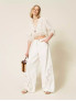Опис: Джинси з bull деніму мають широкий крій по всій довжині та п’ять класичних кишень, завдяки чому поєднують комфортний fit із впізнаваною джинсовою конструкцією. На передній частині штанин виконана квіткова ажурна вишивка, що додає моделі виразної декоративності та підкреслює фірмову романтичну естетику Twinset, залишаючись при цьому практичним варіантом для повсякденного носіння. Завдяки 100% бавовняному складу джинси добре тримають форму, залишаються дихаючими й комфортними протягом дня, підходять для міжсезоння та теплої пори року, легко поєднуючись із базовими топами, сорочками та легкими джемперами у сучасних casual-образах.