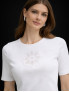 Опис: Еластична трикотажна футболка з вишивкою для ідеальної посадки та комфорту, класичним круглим вирізом і короткими рукавами. Лаконічний крій з м'якою тканиною забезпечує практичність для щоденного носіння цілий рік, поєднуючи мінімалістичний стиль з високою зносостійкістю та зручністю.