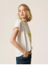 Опис: Футболка з м’якого бавовняного джерсі має прямий regular-крій, округлий виріз горловини та короткі рукави, що забезпечує комфортну посадку та універсальний силует для щоденного носіння. Розміщений спереду принт з акцентним написом та графічними елементами додає виробу виразної сучасної естетики, роблячи його центральною деталлю повсякденного образу. Завдяки натуральному складу з невеликим додаванням еластану в окремих деталях футболка приємна до тіла, добре дихає й підходить для теплої пори року та міжсезоння, легко поєднуючись з джинсами, шортами чи спідницями у casual та street-style луках.