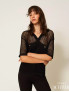 Опис: Поло-светр з вільним кроєм і центральною гладкою вставкою, доповнений сітчастим візерунком, коміром на ґудзику, короткими рукавами, кишенями з логотипованими ґудзиками. Модель з колекції Actitude ідеальна для весняно-літнього сезону завдяки дихаючим властивостям віскози, забезпечуючи комфорт і легкість у повсякденному носінні. Практична для комбінування з брюками чи спідницями, створює жіночний силует з витонченою текстурою та елегантною простотою.