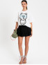 Опис: Футболка оверсайз з м’якого бавовняного джерсі має розширений прямий крій, спущену лінію плеча та короткі рукави, завдяки чому силует виглядає розслаблено й не обмежує рухів. Контрастний розміщений принт спереду з декоративною вишивкою нитками підкреслює арт-естетику колаборації з художником Myfo, додаючи виробу виразного характеру та роблячи його центральним акцентом образу. Завдяки переважно бавовняному складу з незначною еластичністю в окремих деталях футболка комфортна для щоденного носіння, добре підходить для теплої пори року та міжсезоння і легко поєднується з джинсами, шортами чи більш строгими низами у casual та street-style луках.