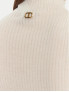 Опис: Светр від TWINSET з високим горлом-гольф та фактурною рубчиковою в’язкою. Модель має облягаючий силует (fitted), довгі рукави та тонкі отвори в’язки «open work» для легкості. На спинці розташована металева пластинка-логотип Oval T. Виріб вироблений в Італії і підходить для повсякденних і ділових образів в холодну пору, коли потрібна тепло і стиль.