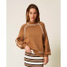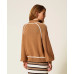 Светр із суміші віскози з гладким плетінням та контрастною обробкою. Він має водолазку, довгі рукави вільного крою, ребристу обробку, металеву табличку з логотипом на спині та вільний крій.