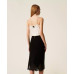 Спідниця міді з віскозної суміші з мереживною обробкою подолу. Еластичний пояс на талії, бічний розріз, фестончастий низ, злегка розкльошені.