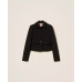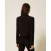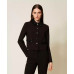 Короткий креп-жакет з віскозної суміші з коміром і кишенями, оздобленими паєтками. Довгі рукави на манжетах, застібаються на ґудзики відповідного кольору, мають кишені з клапанами, підкладку та логотип у формі овальної Т ззаду, приталений крій.