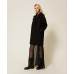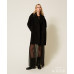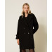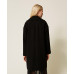 Чорне пальто Twinset Actitude, однотонне. Двобортний дизайн, зворотний комір, довгі рукави, застібка на ґудзики спереду, бічні кишені, манжети на ґудзиках та бляшка з логотипом на спині.