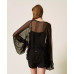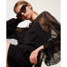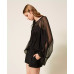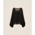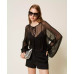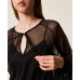 Вуалева блузка з колекції Actitude з краплеподібним розрізом спереду та зав'язкою. Довгі пишні рукави, топ-комбінація в тон, вільний крій.