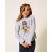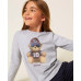 Дівчача футболка з еластичного бавовняного трикотажу з принтом ведмедика Тедді та прозорими стразами, що наносяться праскою, з круглим вирізом, довгими рукавами, стандартним крій.