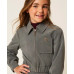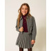 Дівчача укорочена фланелева куртка меланжового сірого кольору з фарбованої пряжі . Сорочений комір, металева застібка-блискавка, накладна кишеня з логотипом Oval T, довгі рукави, манжети на ґудзиках, зібраний еластичний низ, підкладка, прямий крій.