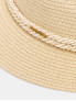 Опис: Капелюх з плетеного матеріалу має форму з широкими полями та округлою тульєю, що надійно тримається на голові та створює виразний силует, не перевантажуючи образ. Легкий паперовий матеріал добре пропускає повітря й забезпечує комфорт під час носіння в спекотний сезон, а текстильна вставка з поліестеру з внутрішнього боку м’яко фіксує виріб і підвищує зносостійкість. Завдяки універсальній формі та лаконічному дизайну капелюх підходить для літа й теплих днів міжсезоння, захищає від сонця та легко поєднується як з пляжними, так і з міськими образами, додаючи їм витонченої курортної естетики.