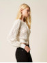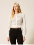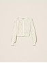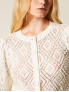 Опис: Вільний кардиган з трикотажу ромбовидним візерунком та аплікаціями з перлин, круглим вирізом, короткими рукавами та застібкою на ґудзики для елегантної посадки. Лаконічний крій з м'якої бавовняної тканини забезпечує комфорт для багатошарових чи casual образів весна-літо, поєднуючи вишукану естетику з практичністю та високою зносостійкістю.