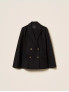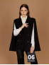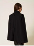 Опис: Елегантне пальто капе чорного кольору з м’якої та щільної вовняної тканини з поліамідом. Модель має подвійний ряд гудзиків із золотистими металевими деталями, комір і лацкани з оздобленням у вигляді торчон (вишуканий декоративний плетіння). Вільний крій забезпечує комфорт і свободу рухів. Виготовлено в Італії з особливою увагою до деталей, підкреслює класичний стиль і модерний шарм.