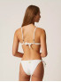Опис: Верх бікіні певної форми (бандо чи трикутник) з вишивкою пайєтками золотою ниткою, знімними м'якими чашечками, регульованими зав'язками на шиї чи бретелями з люверсами та зав'язкою на спині. Лаконічний крій з блискучими деталями пасує для пляжного чи resort стилю весна-літо 2026, забезпечуючи комфорт та високу зносостійкість