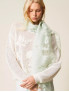 Опис: Легка шовкова стола розміром 70x180 см з інтарсійним мереживом та прозорими вставками, прикрашена брендовою табличкою з логотипом. Елегантний аксесуар з тонкої текстури ідеально доповнює вечірні та повсякденні образи, додаючи жіночності та вишуканості. Практична для драпування на плечах чи шиї, забезпечує комфорт носіння в міжсезоння.