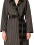 Опис: Стильне двостороннє пальто в чорному та білому кольорах з малюнком у клітинку, з широким кроєм оверсайз. Має класичні лацкани-відвороти, довгі рукави, прорізні кишені і знімний пояс, який допомагає формувати силует на талії. Пальто підходить для осінньо-зимового сезону 2025 року, поєднує функціональність і елегантність у сучасному стилі. Рекомендовані методи догляду включають дбайливу суху чистку, не можна прати, не використовуйте хлор, прасування максимум 110°.