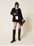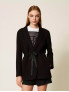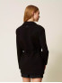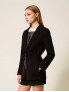 Опис: Чорний піджак класичного прямого крою з довгими рукавами, воротником з лацканами та застібкою на ґудзики з логотипом. Має кулиску на талії з глянцевою репсовою стрічкою для регулювання силуету і дві кишені типу "Америка". Виготовлений з тканини scuba, що надає виробу структуру і комфорт, підходить для осінньо-зимового сезону 2025 року. Елегантний і стильний, цей блейзер чудово підкреслює жіночність і сучасний класичний стиль бренду TWINSET. Рекомендації по догляду включають дбайливу хімічну чистку без прання.