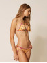 Опис: Тонги бікіні з ексклюзивним фулярним принтом Twinset, регульованими зав'язками по боках та серцеподібним металевим логотипом на спині створюють легкий, грайливий літній силует. Підкладка забезпечує комфорт і практичність для пляжного відпочинку чи басейну, з еластичними властивостями для ідеальної посадки. Модель поєднує естетичну витонченість з універсальністю, ідеально доповнюючи трикутні топи для повного пляжного образу.