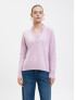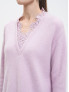 Опис: Пуловер від TWINSET з V-вирізом, оздоблений мереживною обробкою у тон виробу, має фактурну в’язку «rasata», довгі рукави, манжети та низ із резинки, бокові розрізи на низу та логотип-пластинку Oval T на спинці. Силует loose fit.
