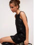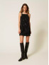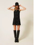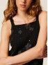 Опис: Чорна коротка сукня з тканини букле, прикрашена вишивкою у вигляді квітів по всій поверхні. Виріб має прямий крій, без рукавів, з квадратним вирізом і прихованою застібкою-змійкою ззаду для зручності надягання. Сукня створює елегантний і романтичний образ, ідеальний для урочистих випадків і вечірніх заходів. Матеріал міцний, забезпечує стійкість до зморщування, догляд – ручне прання або делікатне хімічне чищення.
