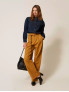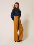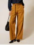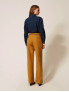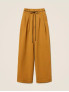 Опис: Брюки з габардину мають високу посадку та широкий прямий крій по всій довжині штанини, що візуально витягує силует і забезпечує свободу рухів. Передні складки, бічні прорізні кишені та акуратні задні кишені з підрізами додають моделі структурованості та підкреслюють її як елегантний, але водночас повсякденний варіант. Завдяки суміші бавовни, льону та ліоцелу брюки добре дихають, комфортні для тривалого носіння в міжсезоння та теплішу погоду, легко поєднуються з сорочками, топами чи жакетами, створюючи сучасні офісні та casual-образи.