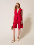 Опис: Шорти‑бермуди вільного крою із завищеною талією та м’якими складками спереду створюють елегантний, але невимушений силует, який легко інтегрується як у ділові, так і в повсякденні літні образи у стилі Twinset. Легка лляно‑віскозна тканина забезпечує комфорт у спекотну погоду, добре пропускаючи повітря та м’яко драпіруючись по фігурі. Бавовняні деталі підсилюють відчуття комфорту, а продуманий крій з поясом і кишенями додає виробу практичності, дозволяючи носити шорти як з сорочками та піджаками, так і з більш розслабленими топами.