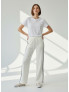 Опис: Штани джогери з м’якої віскозної тканини мають високу талію та прямий, злегка звужений донизу крій зі зручним еластичним поясом, який забезпечує комфортну посадку й не тисне під час руху. Бокові лампаси й кишені типу «американка» додають спортивного характеру та візуально витягують силует, зберігаючи акуратний, охайний вигляд, доречний як у повсякденних, так і в більш стильних міських образах. Завдяки поєднанню віскози, поліаміду й еластану тканина приємна до тіла, добре тримає форму й майже не сковує рухів, що робить модель практичною для міжсезоння та теплої пори року. Штани легко поєднуються з топами, сорочками чи жакетами з колекції Actitude, дозволяючи створювати сучасні, комфортні комплекти з акцентом на невимушену елегантність бренду Twinset.