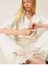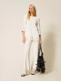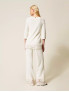 Опис: Вільні штани з м'якої в'язки з декоративними мереживними вставками, що створюють легкий романтичний акцент, прямим кроєм та еластичною талією для комфорту. Модель кольору Off White з колекції Primavera Estate 2026 ідеальна для весни-літа як базовий елемент casual образів з топами чи сорочками. Рекомендований догляд: без відбілювачів, без сушіння в машинці, прасування при низькій температурі.