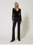 Опис: Особливості крою та стиль: брюки з розкльошеними штанинами, високою посадкою, зручною боковою застібкою на блискавку, що підкреслює фігуру. виготовлені для використання у весняно-осінній період. сучасний класичний крій, що поєднує зручність і стильність. тканина еластична, забезпечує комфорт і свободу рухів, рекомендовано ручне прання. Модель ростом 178 см, розмір XS/40. Виготовлено в Італії.