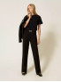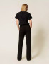 Опис: Брюки фасону кльош із тканини Milano stitch, з високою посадкою і широким ременем з тканини з металевою пряжкою з логотипом Oval T. Мають приховану застібку на блискавку збоку. Модель забезпечує ефектний та елегантний силует, підходить для офісного і ділового гардеробу. Розмір моделі S/40, зріст 178 см. Рекомендований делікатний догляд, не прати, не відбілювати, не сушити в машині, дозволена професійна хімчистка.