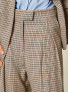 Опис: Жіночі штани TWINSET з лінії Actitude, виконані з костюмної тканини в мікро-принт pied-de-poule (дрібний «гусяча лапка») у натуральних бежево-чорних тонах. Модель має фасон палаццо: розкльошені від стегна штанини, що формують вільний, струмливий силует. Передбачена висока посадка на талії, пояс із шльовками під ремінь, застібка спереду (блискавка та гудзик/гачок) та защипи (складки) спереду, які додають об’єму й підкреслюють посадку. Є зручні бокові кишені. Штани ідеально підходять для міських і smart-casual образів: їх можна поєднувати з жилетом та жакетом у такому ж принті або з базовими светрами й сорочками для створення стильного комплекту. Колір: Natural Houndstooth / Natural Pied-de-poule (натуральний дрібний «гусяча лапка»).