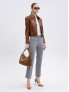Опис: Прямі брюки сіро-блакитного відтінку з класичним кроєм і візерунком "ялинка". Модель має дві бічні та дві задні кишені, застібку на ґудзики і блискавку, а також декоративну металеву овальну нашивку з логотипом "Oval T" на поясі. Виготовлені з м'якої і комфортної суміші тканин з вовною, підходять для офісного стилю та осінньо-зимового сезону. Виготовлено в Італії. Рекомендовано суху чистку.