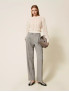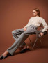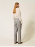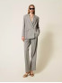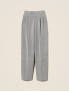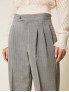 Опис: Брюки класичного крою з високою талією, прямими широкими штанинами, із сірою основою та тонкими білими смужками. Модель оснащена застібкою на блискавку з ґудзиками та бічними кишенями. Має елегантний, суворий вигляд, підходить для офісного стилю і холодного сезону. Виготовлені в Італії. Рекомендований делікатний догляд, без прання в машині, суха чистка.