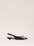 Опис: Балетки-слингбеки TWINSET виконані з чорної блискучої тканини, декоровані бантом зі стразами. Мають каблук висотою 3 см, підошву з гуми та шкіряну внутрішню підкладку для комфорту. Стильна модель підкреслює сучасний жіночний образ і пасує до святкового та повсякденного гардероба. Догляд: не прати, не використовувати хімічне чищення.