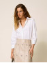 Опис: Жіноча сорочка від TWINSET виготовлена з м'якого поплінового матеріалу білого кольору. Має широкий крій (wide fit), декоративний вузол спереду і класичний комір. Розроблена для комфортного та стильного повсякденного носіння. Рекомендований догляд: ручне прання, не відбілювати, прасувати при низькій температурі.