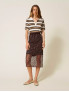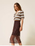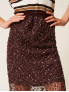 Опис: Ефектна спідниця TWINSET з лінії Actitude, виконана з багатошарового м’якого тюлю та повністю декорована блискучими паєтками. Модель має довжину longuette, що створює елегантний витягнутий силует. Пояс — еластичний, комфортно тримає посадку на талії. Завдяки легкому тюлю та гладкій підкладці спідниця зберігає ніжний об’єм і приємно рухається під час ходи. Ідеальний вибір для святкових та вечірніх образів, проте легко поєднується і з базовими топами чи светрами для стильних міських комплектів.