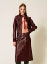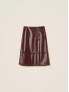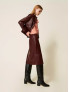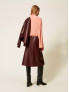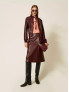 Опис: Юбка миди кольору "Wine tasting" (бордово-фіолетовий) злегка розкльошеного крою, яка має приховану застібку на блискавку та декоративні дзеркальні ґудзики з логотипом. Виготовлена з високоякісного штучного шкіряного матеріалу, що додає виробу сучасного і стильного вигляду. Підходить для повсякденного носіння, легко поєднується з різними образами. Рекомендації з догляду: ручне прання, не використовуйте грубі хімічні засоби і не сушіть у машині. Ця модель підкреслює вишуканість і елегантність, характерні для бренду TWINSET.