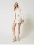 Опис: Виготовлена з легкого блискучого нейлону зі стьобаною фактурою та асиметричним низом. Обвортковий дизайн зі застібкою на гачок і потайною блискавкою з боків. Модель оснащена двома боковими кишенями. Рекомендується делікатне прання при температурі до 30°, без відбілювачів, сушіння у тіні, без прасування. Зріст моделі 178 см, розмір XS/40. Виготовлено в Італії за високими стандартами Twinset.